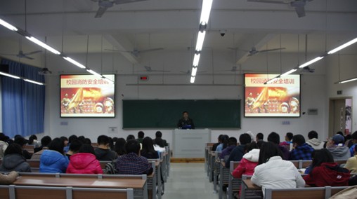 胡建队长的讲解深入浅出,从如何拨打119正确报警到泡沫灭火器的正确使用方法外,还涉及火灾发生的原因、火灾发生后造成的严重后果、如何预防火灾、火灾发生后的逃生技能等方面进行详细讲解。胡队长不仅从理论上向师生们传授了消防安全知识,还列举了全国各地大量的真实火灾案例视频为大家讲解,触目惊心,发人深省。
