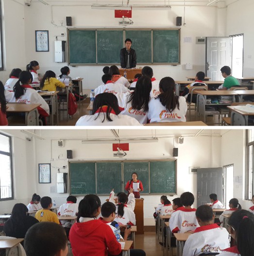 在正午明媚的阳光下,学生党员们前往莲河中学志愿者工作站熟悉场地。紧接着和莲河中学校长、教务处主任、初一、初二年段长们在教师办公室进行了简短的交流,简单介绍活动的主要内容,确认我院与其共建的目的和意义。