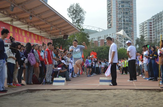 下午2点,廖梦舟和夏凡同学稳扎稳打,竭尽所能,在跳远的场地上挥洒汗水。
