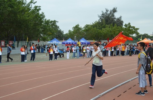 我院学子愈战愈勇,在11点举行的男女4*400米持院旗混合接力赛中凭借5分06秒的优异成绩位居第八,为学院取得了宝贵的2分。