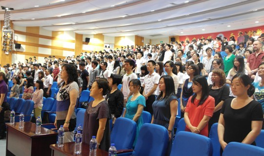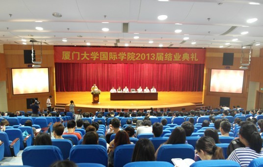 5月31日上午,国际学院在漳州校区主楼二楼大报告厅隆重举行2013届学生结业典礼,为今年这批即将离开厦门大学赴国外留学的学生颁发结业证书。中国留学服务中心高等教育项目负责人贾颖,英国合作大学各代表,中国留学服务中心留学组,国际学院院长郑通涛、党委书记陈志伟、副院长耿虎、党委副书记伍伟平、办公室主任黄冠华、团委书记刘婉玉,以及2013届学生的家长出席了典礼。典礼由国际学院副院长吕子玄主持。