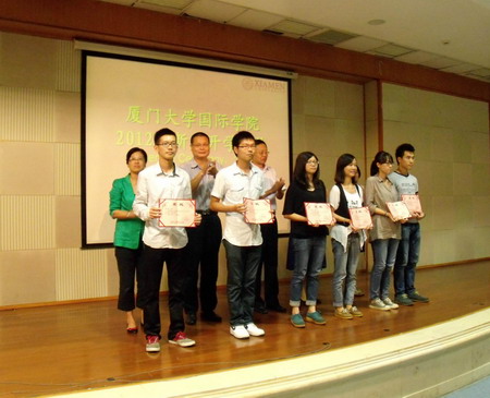 最后,与会领导为国际学院优秀学生颁发奖学金证书。国际学院教师逐个上台与新生见面,作自我介绍。开学典礼气氛浓烈,掌声迭起。在激昂悠扬的校歌声中,2012级新生开学典礼圆满结束。