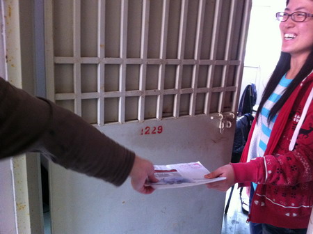 3月5日中午,我院学生党小组成功组织都柏林项目学生开展学雷锋活动。此次活动的内容是将映雪、若谷园区内长期积累的信件送到同学们手中。事情虽小,却解决了园区内实际的困难,得到了老师、同学们、保安阿姨的一致好评。