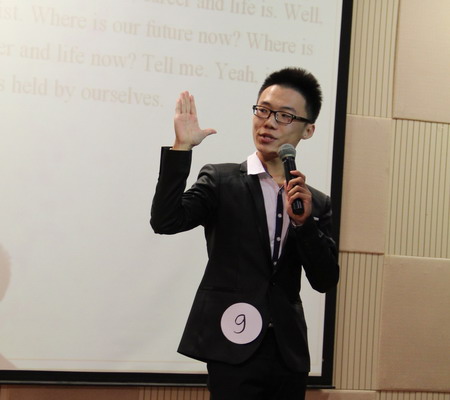 大赛分为英文词汇、英文朗诵、英文歌曲三个部分,目的在于让同学们在浩瀚辞海中领略英文魅力,在美文朗诵中品味中西文化,在英文旋律中感受青春风采。来自我校经济学院、管理学院、海洋与地球学院、嘉庚学院、国际学院的24名同学在比赛中相互竞争、展现才艺。
