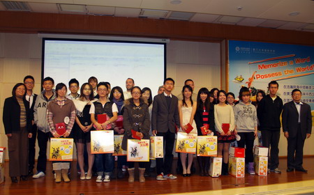 12月23日,由国际学院主办、中国移动通信联办的2011动感地带杯“青春飞跃重洋”英语能力大赛,在漳州校区主楼一楼报告厅圆满落下帷幕。国际学院院长郑通涛,副院长吕子玄、傅万里出席了大赛现场。来自英国的Robin Mitchell,来自美国的Philip Williams,以及来自加拿大的Adam Moran三位国际学院外教担任本次大赛评委,并为获奖选手颁奖。