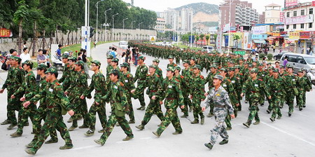 9月26日上午10时30分,嘹亮的口号声和高亢的军歌声响彻在漳州校区北门。校长助理、校区党工委书记、管委会主任王巧萍与我校军训领导小组成员、各院系10级同学齐聚漳州校区北门,热烈欢迎完成拉练任务的2011级新生。