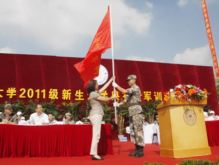 朱崇实说,同学们,你们进入厦大的第一课,也是最重要的课程之一是军事训练,它将帮助你们更好地理解什么是自主、什么是独立、什么是集体主义、什么是坚忍不拔、什么是团结与合作、什么是健康与力量。由衷希望每位同学都要重视和热爱这第一堂课,要把这第一堂课当作锤炼自己的好机会,以不怕苦、不怕累的精神圆满地完成军训任务,在军训中得到良好的锻炼并取得优异的成绩。