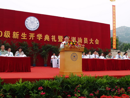 9月17日上午,我校在漳州校区田径场隆重举行2010级本科生开学典礼。校长朱崇实在典礼上希望新生们尽快完成从未成年人到成年人的转变,主动承担责任、学会独立、学会自律、学会包容。