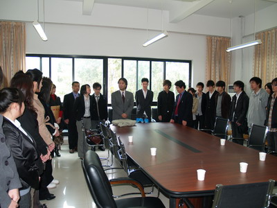 下午2:30分,小谷内郁宏教授一行访问漳州校区。在国际学院213办公室,我院08级中日项目学生首先向小谷内郁宏教授一行做了自我介绍并汇报学习成果。紧接着,16名07级学生做了两年学习成果、心得报告,日方对他们的日语水平表示非常满意,并鼓励同学们再接再厉,学习成绩更进一步。报告结束后,我院学生与日方教师自由交谈,气氛活跃愉快。
