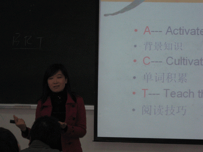 第二堂课是由武汉理工的陈凯老师讲授的雅思阅读课。陈老师教学语言诙谐幽默,课堂上不时发出满堂的笑声。陈老师通过自己雅思培训教师的背景,给学生指出雅思考试的规律和应试技巧。陈老师把握课堂节奏非常准确,有张有弛,一堂课一气呵成,大家在不知不觉中听完了一堂课,知识也在不知不觉中进入同学们的头脑。