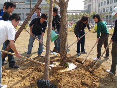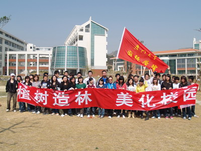 温润的三月,和风抚面、朝阳暖人。在大好的春光里,国际学院20余名同学积极响应学校的号召,于3月15日上午在厦门大学漳州校区嘉庚五号楼前的草地进行了植树活动。