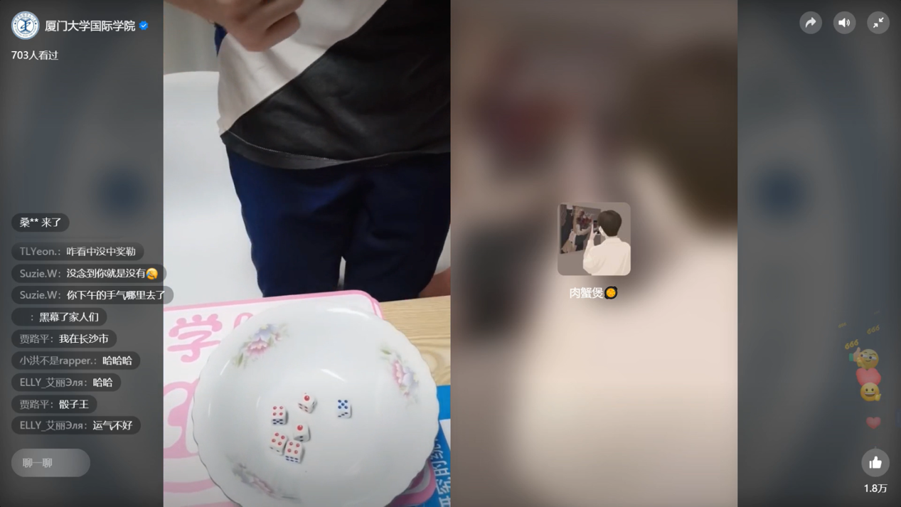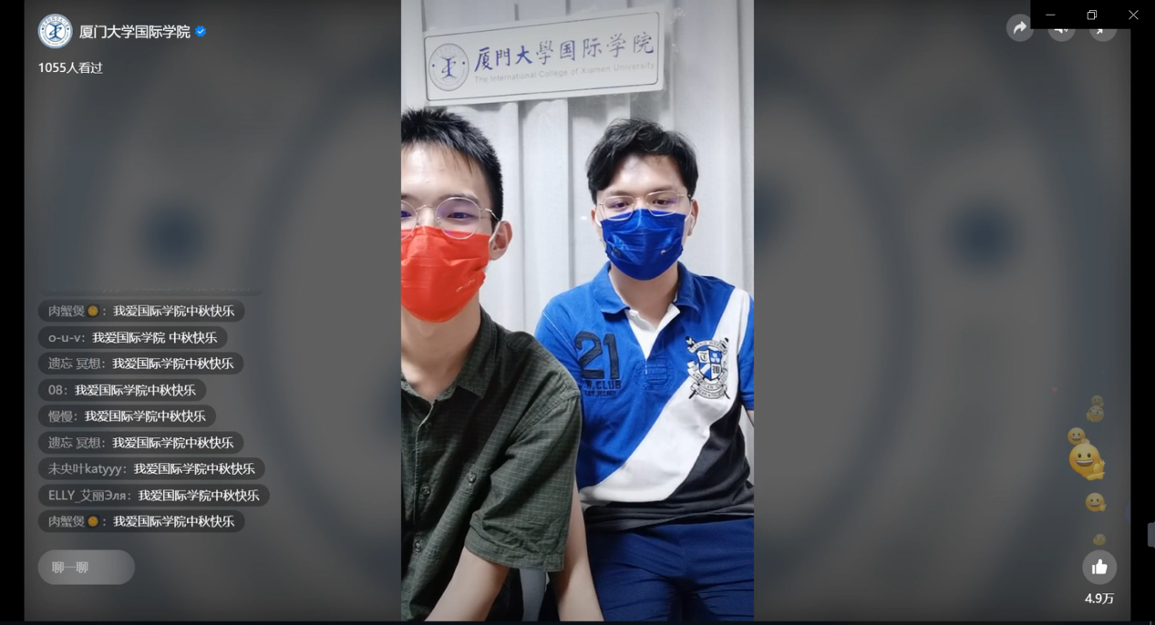 参与直播的柯东同学也表示:“这是我第一次直播,当小助理有点紧张,但是大家反响都很好。尤其是博饼环节非常的精彩,同学们踊跃报名,很有节日的气氛,感谢各位老师和同学们的辛勤付出。”