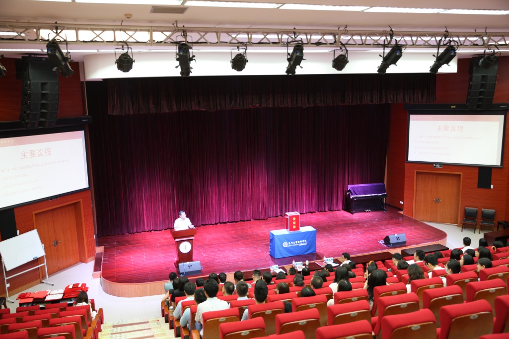 7月29日下午,国际学院在坤銮楼多功能报告厅召开2020-2021年度全院教职工大会。会议主要有四个议程:一、差额选举产生第八届教职工代表大会国际学院代表;二、对2020-2021年度学院各类奖项获得者进行表彰;三、院长陶涛总结上一年度行政工作并提出新阶段新计划;四、党委书记何元赞对上一年度党建与思政工作进行总结并提出下一阶段重点工作。会议由学院党委书记何元赞主持。