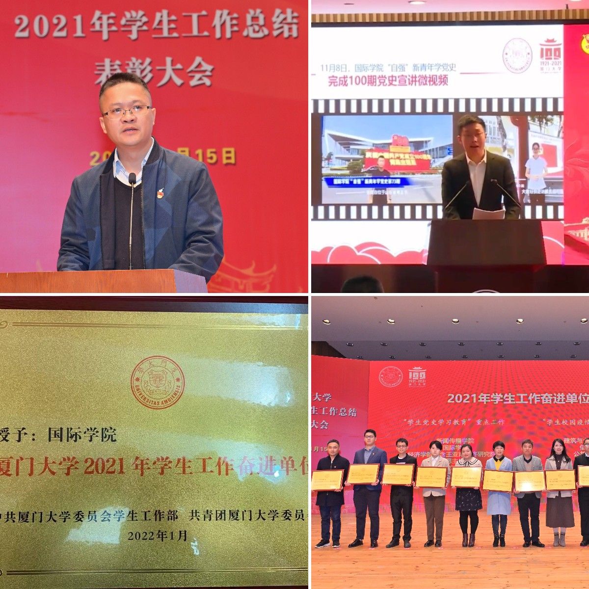 通过一年的努力,国际学院“自强”新青年党史宣讲实践队荣获福建省大中专学生志愿者暑期“三下乡”社会实践活动优秀典型,是厦门大学成功入选的两支实践团队之一。国际学院也因学生党史学习教育重点工作成效突出,获评“厦门大学2021年学生工作奋进单位”。