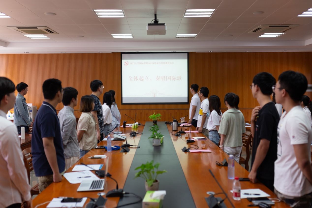 6月20日,国际学院在翔安校区坤銮楼A104召开“青春心向党,建功新时代”2022届毕业生党员教育大会。学院党委副书记陈向柳,团委书记邹文菁,辅导员吴婧、钟民栋以及2022届全体毕业生党员参加活动。