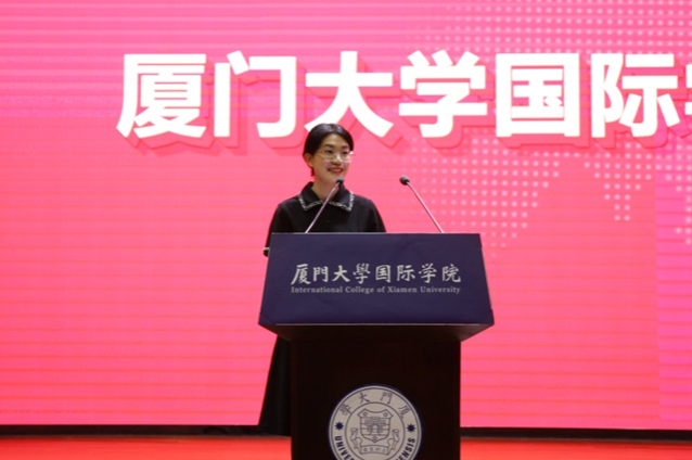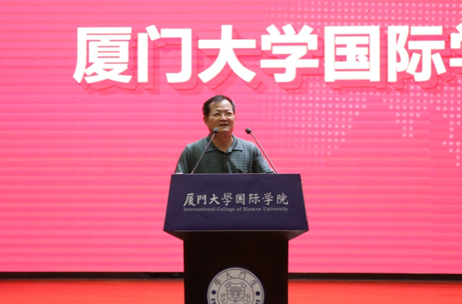 最后,何元赞书记代表学院党委讲话。他首先对新生的到来再次表示热烈的欢迎,简要介绍了厦门大学和国际学院的办学情况,希望同学们能珍惜来之不易的学习环境,最大程度提升自己的语言知识储备和全方位素质能力,早日学成归国,成为能为社会主义现代化建设做出贡献的优秀接班人。他对新生提出了三点希望:一是希望同学们坚守初心、砥砺前行,厚植家国情怀,刻苦学习;二是希望同学们锐意进取,永不言败,不断走出舒适圈,挑战自我;三是希望同学们快乐学习,成人成才,满怀信心,向理想迈进。对即将开启的大学生活,他也给同学们提出了三点要求:一是遵规守纪,文明做人;二是安全第一,健康先行。树立健康理念,增强安全意识;三是坚定理想信念,提高政治意识,做社会主义建设者和接班人。以青春之我、奋斗之我谱写出属于自己的壮美青春篇章。