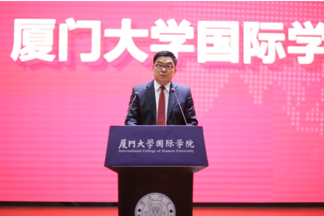 典礼在雄壮的国歌声中拉开帷幕。院长陶涛教授代表学院致辞,他首先为2022级新生送上衷心的祝贺和热烈的欢迎,向给与学院支持和信任的学生家长们表示崇高的敬意和衷心的感谢。他简要回顾了厦门大学的办学历程,指出厦门大学不仅景色优美,更有着追求卓越、争创一流的悠久历史和百年光荣传统。他希望同学们来到厦门大学后,能进一步感悟厦大优秀的光荣传统,传承弘扬厦大“爱国、革命、自强、科学”四种精神,不辱时代使命,为国家富强、民族复兴、社会进步作出贡献;希望同学们能牢记校训,永葆进取之心,潜下心来,刻苦学习,练就过硬的本领,早日实现留学梦想;希望同学们抓住出国(境)学习交流的机会,培养全球视野,建立勇担使命的世界格局,成长为通晓国际规则、积极参与国际事务和竞争、善于驾驭复杂国际事务的具有全球胜任力的人才;希望同学们尽快适应新环境,团结互助,尽快融入大学生活,学习之余,充分利用厦门大学一流的软硬件条件,发扬国际学院体育育人的优良传统,积极参加各项体育活动,增强体质、健全人格、锻炼意志。