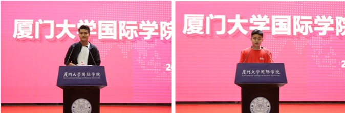 2020级酒店管理专业学生林子昂和2022级新生翁平川分别作为在校生代表和新生代表发言。林子昂代表全体学长学姐向来自五湖四海的2022级新生表示热烈的欢迎和真挚的祝福,希望新生们好好珍惜大学时光,满怀激情与信心,确定目标,努力学习,积极参加各项活动,珍惜每一个锻炼和提升自己的机会。翁平川代表全体新生表示厦大是新国际学子们人生的新驿站、新起点、新篇章,他们将秉承厦大“自强不息,止于至善”的校训,严格律己,刻苦学习,砥砺奋进,不负青春韶华。