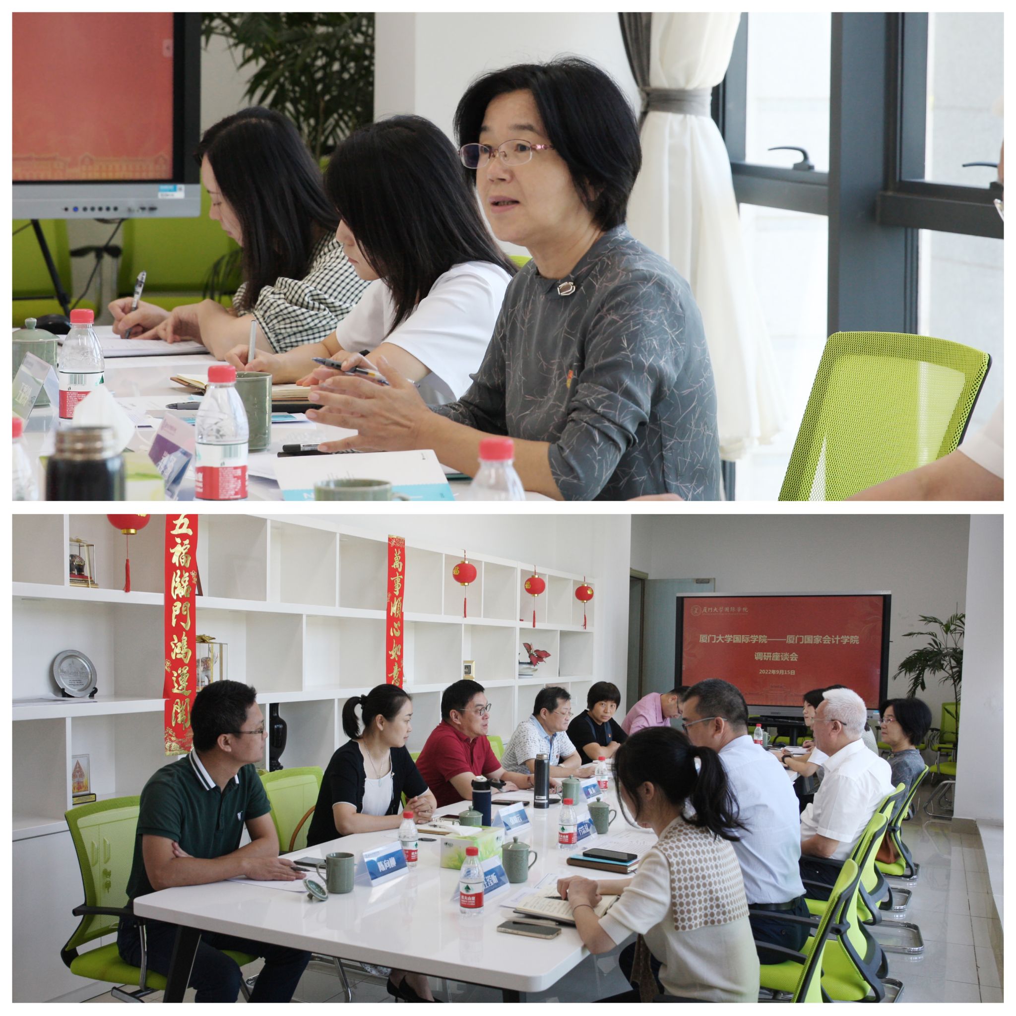 韩景义书记充分肯定了我院国际化办学取得的成绩,指出我院在坚守国际化办学理念,充分发挥自身优势和特色,为国家及社会培养高质量国际化人才等方面给他留下了深刻印象,他简要介绍了厦门国家会计学院的办学历史和办学情况,希望通过此次座谈调研,学习我院先进的国际化办学模式和经验,期待在今后工作中能与学院有进一步合作交流的机会,共同推进国际化教育事业蓬勃发展。