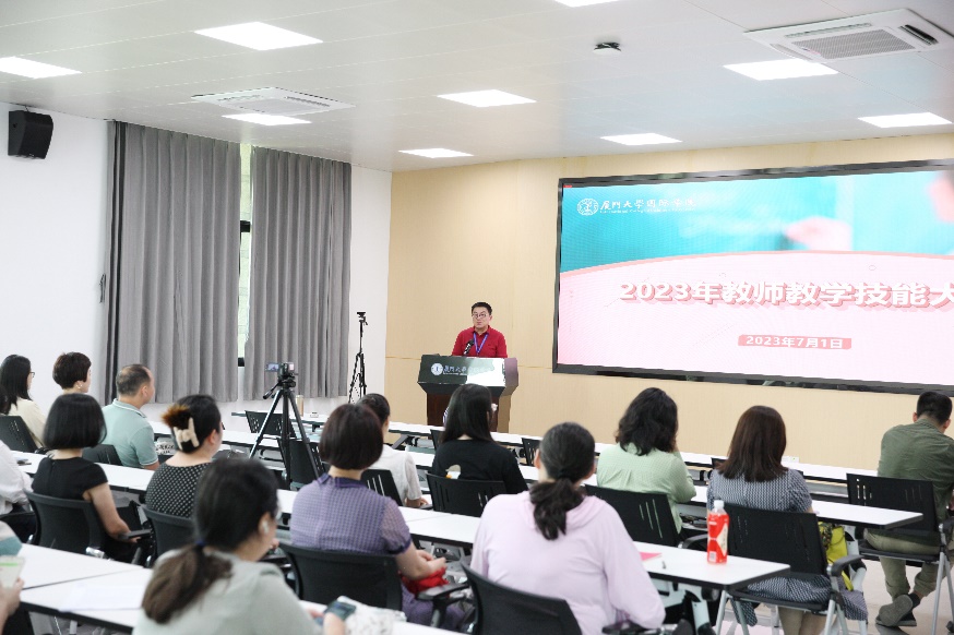 7月1日,国际学院2023年度教师教学技能大赛决赛在漳州校区四号楼如期开赛。英语教研组组长王柔洁老师主持比赛,全体教师到场观摩学习。