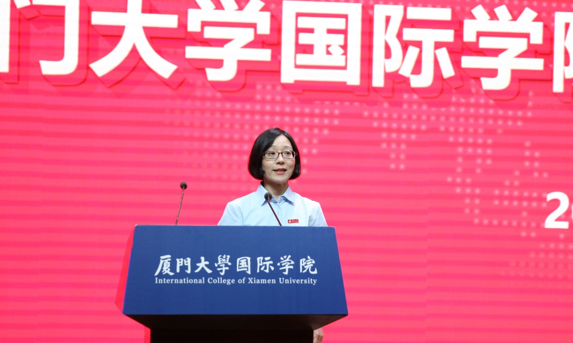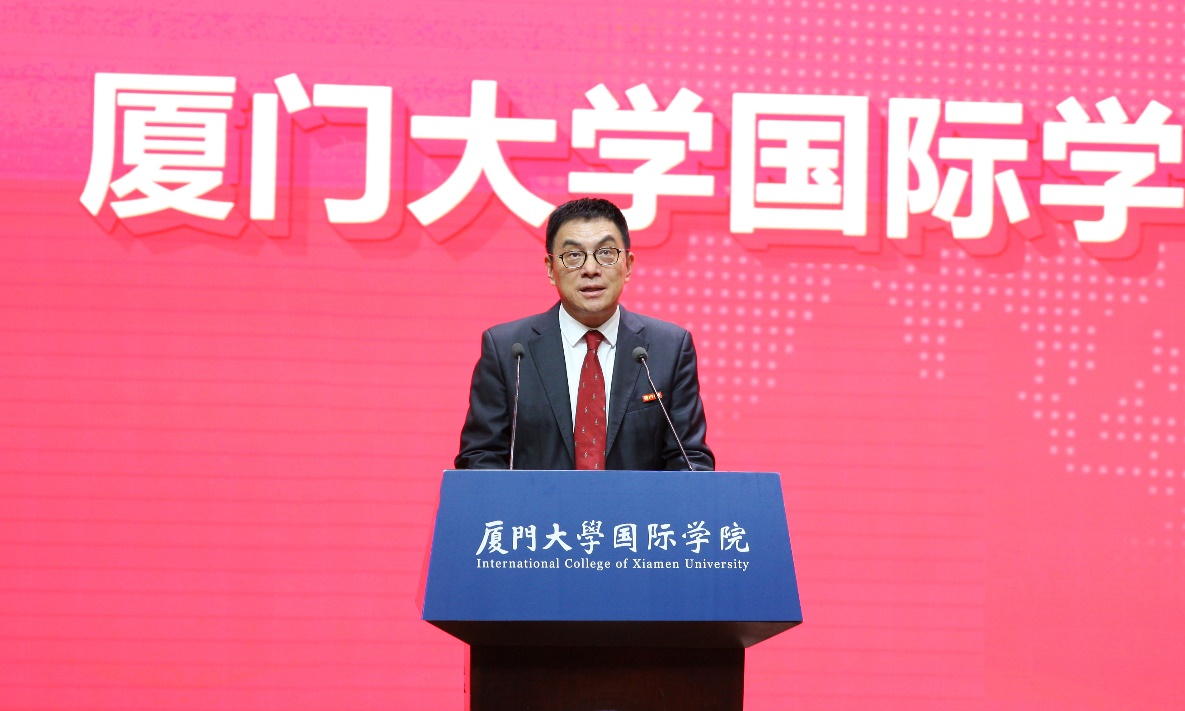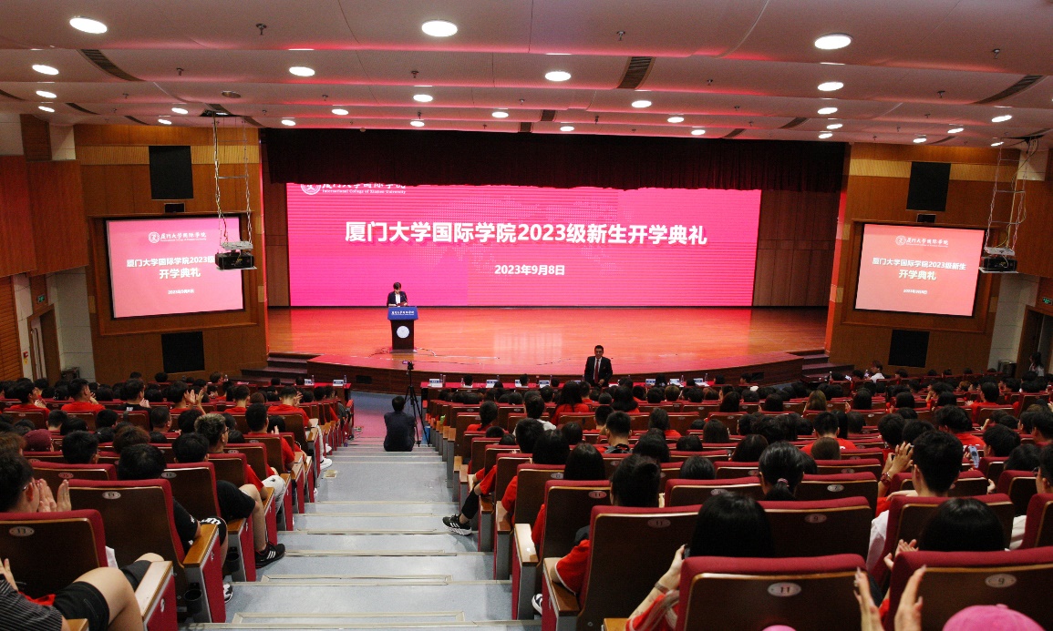 典礼在雄壮的国歌声中拉开帷幕。院长陶涛代表学院致辞,他首先为2023级新生送上衷心的祝贺和热烈的欢迎,向给予学院支持和信任的学生家长们表示崇高的敬意和衷心的感谢。他简要回顾了厦门大学的办学历程,指出厦门大学不仅景色优美,更有着追求卓越、争创一流的悠久历史和百年光荣传统。他希望同学们来到学院后,能牢记厦大人的初心使命,崇尚家国大义,涵养家国情怀,自觉地将个人成长成才和国家发展大势紧密结合起来,努力成为堪当民族复兴重任的时代新人;结合学院发展历程及人才培养成果,他希望同学们能坚持勤勉自律,练就过硬本领。利用好各种学习条件,专心致志、潜下心来,刻苦学习,早日实现留学梦想;希望同学们能抓住出国(境)学习交流的机会,培养全球视野,建立勇担使命的世界格局,成长为通晓国际规则、积极参与国际事务和竞争、善于驾驭复杂国际事务的具有全球胜任力的人才。