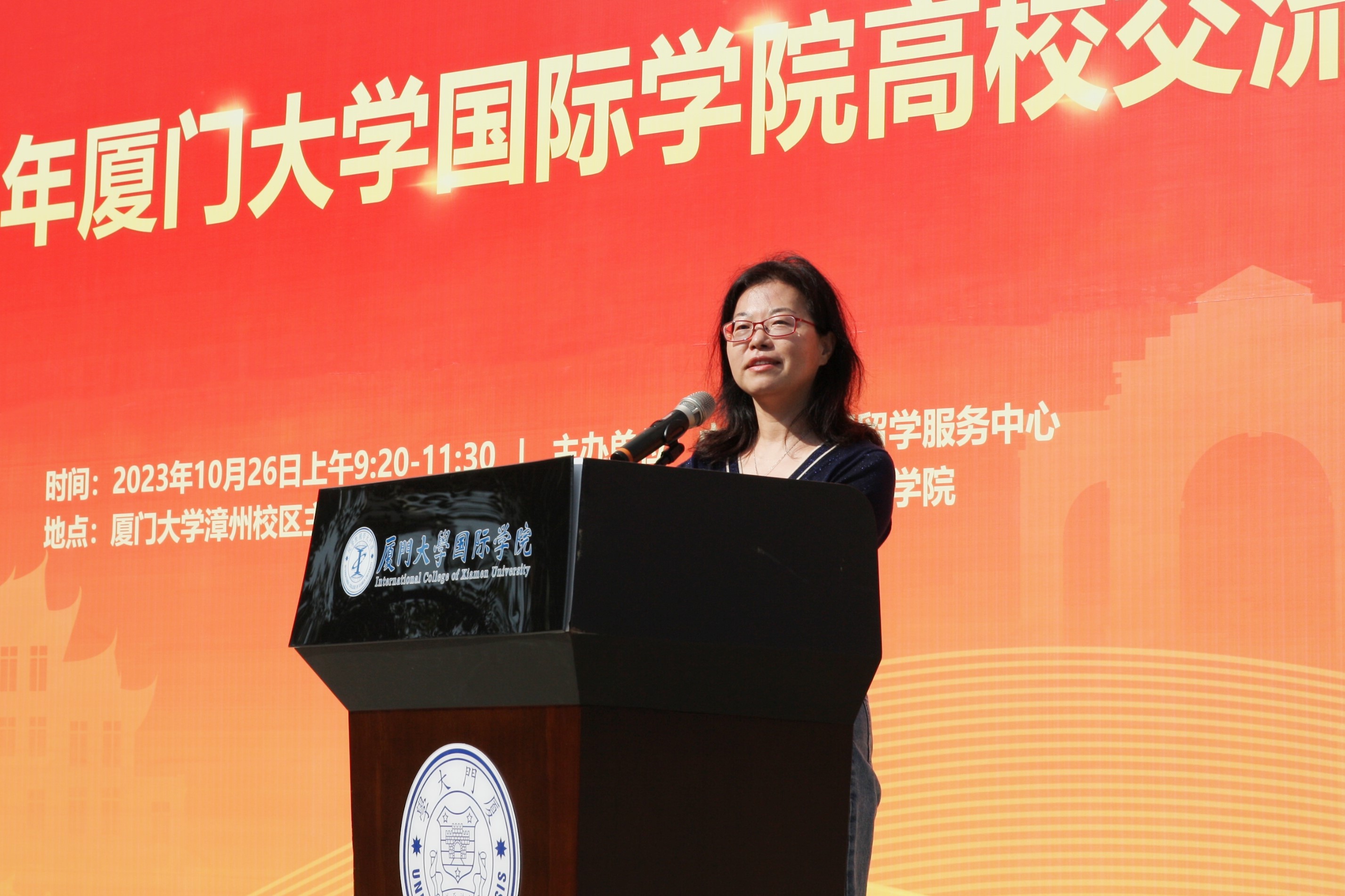 10月26日上午,由中国教育部留学服务中心主办的2023年高校交流会在厦门大学漳州校区主楼群4号楼国际学院前厅成功举办。本次高校交流会共有英国埃塞克斯大学、牛津布鲁克斯大学、赫尔大学、德蒙福特大学以及詹姆斯库克大学新加坡校区等30余所国外合作院校参会。活动开幕式由国际学院副院长陈向柳主持。