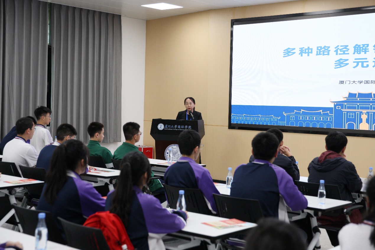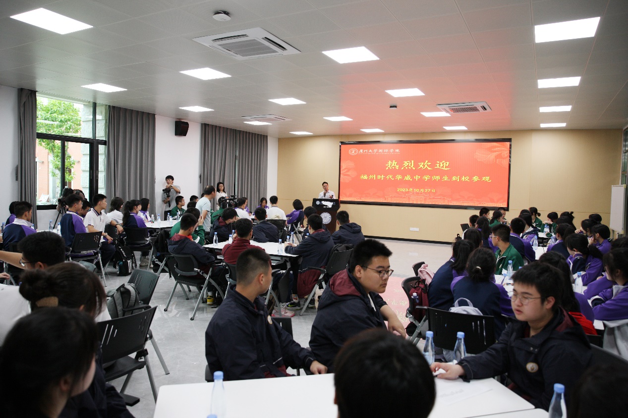 活动伊始,我院副院长陈向柳向来访师生表达了诚挚的欢迎,他指出大学的选择是人生中一个重要的转折点。了解大学、认识大学,对于同学们未来的发展至关重要。他希望参加此次活动的同学们能感受到厦大百年名校深厚的历史底蕴和国际教育的魅力,为未来的学业规划提供有益的参考。