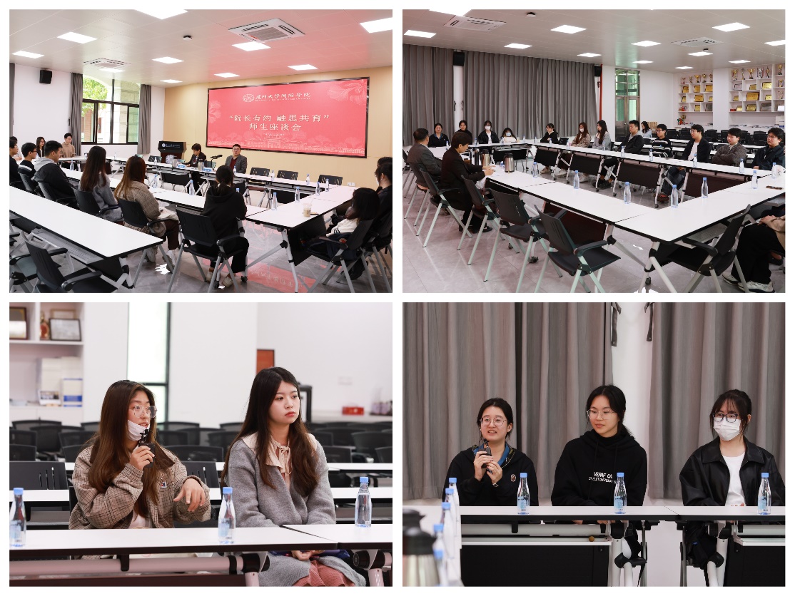 为了更好地倾听学生心声、回应学生关切,充分调动学生参与学院建设、发展的积极性和主动性,扎实提高人才培养质量和水平,近日,学院在漳州校区4号楼101会议室举办“院长有约,融思共育”系列师生座谈会。院长陶涛教授连续三周、分三场与各个年级学生代表交流,共话成长。座谈会由学院党委副书记马向华主持。