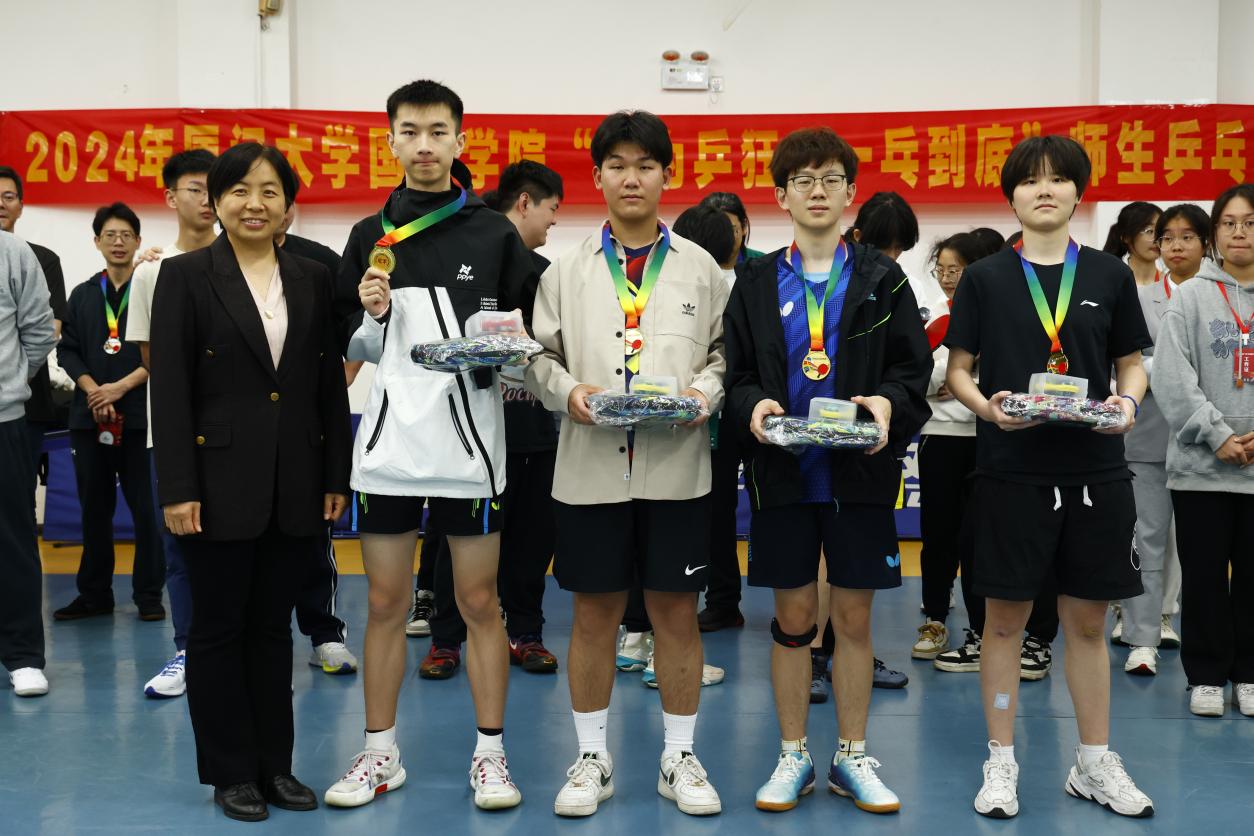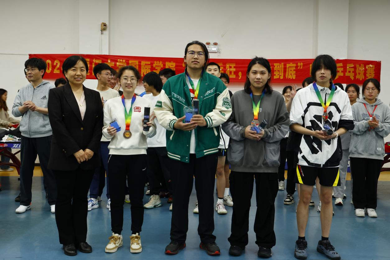 经过两天紧张激烈的角逐,最终决出了本次比赛男女队的冠亚季军,其中男队分别为“不打长胶队”、“帆璟星队”、“乒乓球队”,女队分别为黄思璇、敖辰宇、李彤,学生发展中心体育部指导老师罗流河主持本次颁奖仪式,学院党委副书记马向华为获奖队伍颁发奖牌和奖品,并鼓励大家在今后继续发扬奋勇拼搏的进取精神。