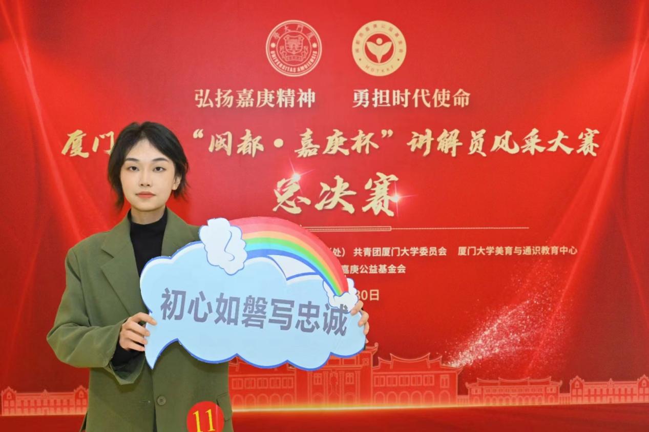 杨珂语,乐鱼网页版登录入口2023级预本硕连读项目学生。喜欢音乐、诗歌,喜欢用文字记录生活。代表学院参加2024年厦门大学“闽南·嘉庚杯”讲解员风采大赛,经报名选拔、初赛角逐、决赛展示,最终脱颖而出,获得三等奖的优秀成绩。