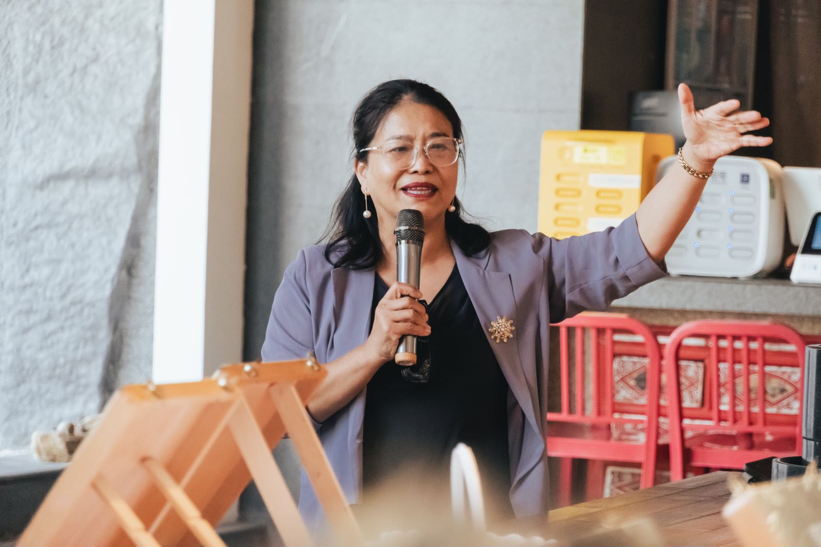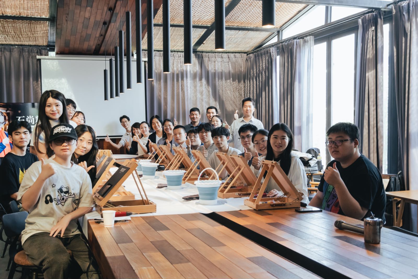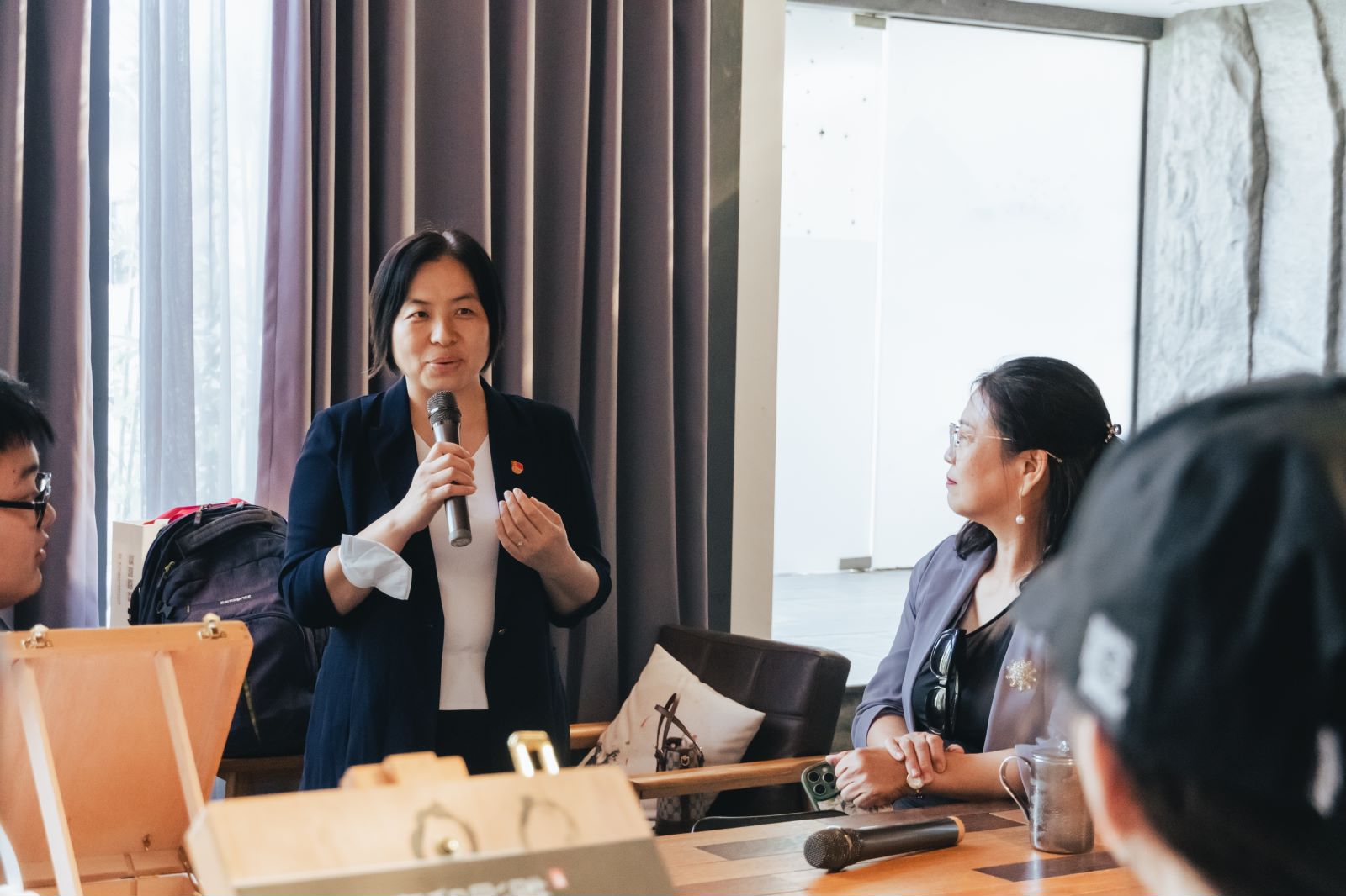 在惠和书院,惠和股份有限公司董事长、国家级非遗惠和影雕第16代传承人李雅华女士为大家介绍了惠和影雕的发展及技艺特点。在与同学们的交流中,李雅华畅谈了自己学习影雕技艺的心路历程,对惠和影雕的社会化传承、品牌化传播以及对生态保护的思考,并希望未来能有越来越多的年轻人加入非遗影雕的宣传阵营。