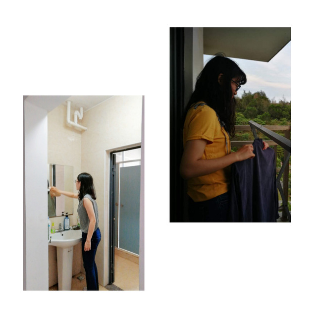 客厅和阳台同样也不能放过,学生党员们不但打扫好自己的小卧室,还将公共卫生区仔细清扫