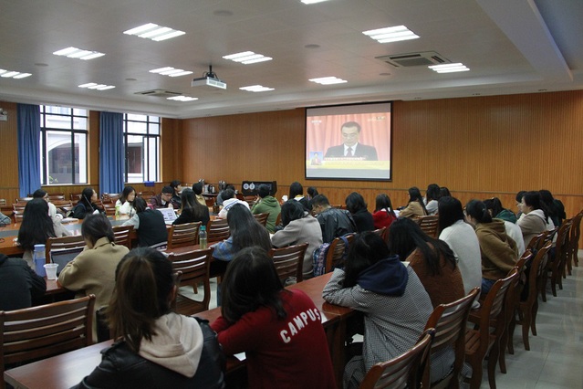 3月5日9时,十三届全国人大二次会议在人民大会堂开幕。学院组织师生代表在坤銮楼A104会议室收看了开幕会直播,认真聆听国务院总理李克强关于政府工作的报告。