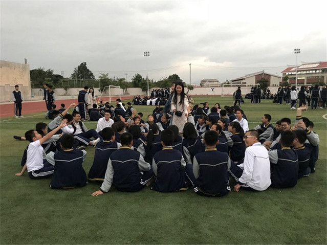 当天下午,学生党员志愿者们来到大嶝中学运动场,分组到初一至初三各年段共12个班级,与中学生们通过互动游戏的形式开始了“破冰”之旅。