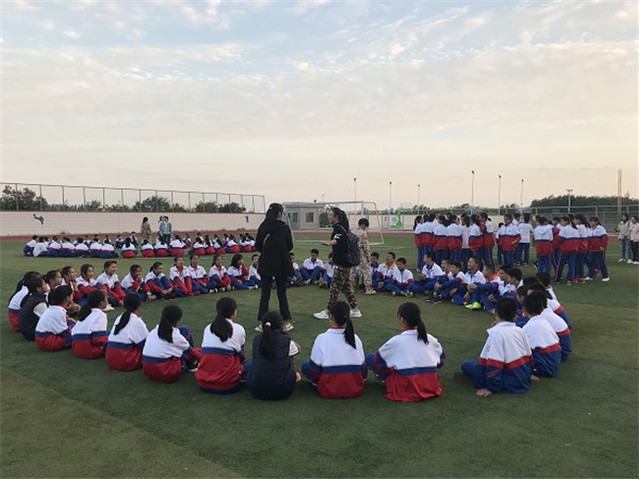 首先,志愿者们引领同学们进行了自我介绍及介绍家乡的环节。随后,带着同学们一起做“猎人松鼠大树”、“抱团”、“坐地起身”等一系列的互动游戏。在活动过程中,志愿者们认真耐心地与同学们沟通交流,比如,询问他们最感兴趣的课堂内容和课堂形式等,为后续的活动开展做好准备。中学生们也都表现出了极高的热情,或是认真地听取游戏规则的讲解,或是积极地回答问题,大家纷纷表示喜欢这种轻松愉快的户外活动课程,并对下一次的英语学习主题活动充满了期待。