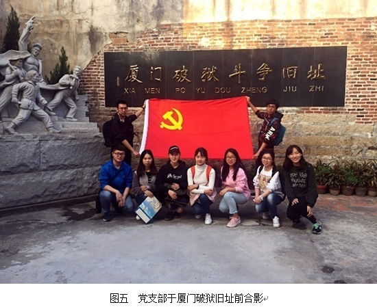 参观完华侨博物馆,党支部全体成员又来到附近的厦门破狱斗争旧址参观。旧址位于一条隐蔽的小巷之内,通过入口处石碑上的介绍,大家了解到1929年至1930年初,国民党当局在厦门逮捕了一批“政治犯”,为营救被逮捕人员,当时中共福建省委书记王海萍、省委组织部部长谢汉秋、团委书记王德和军委秘书陶铸等5人组成破狱委员会,武装劫狱成功,劫狱的中共一方无一伤亡。这一事件当时震惊了海内外,著名作家高云览以此事件为背景写下了著名的《小城春秋》长篇小说。