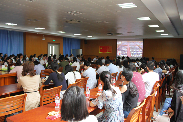 18日一大早,学院党委委员、师生党员代表、海外生代表等共百余人就来到C104会议室,一同观看党的十九大开幕会直播。