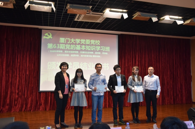 2016年11月11日中午,厦门大学党委党校第63期(学生)党的基本知识学习班结业仪式在厦门大学翔安校区黄朝阳楼学术报告厅举行。校区学生办、各学院党委领导和带队老师出席了结业仪式。