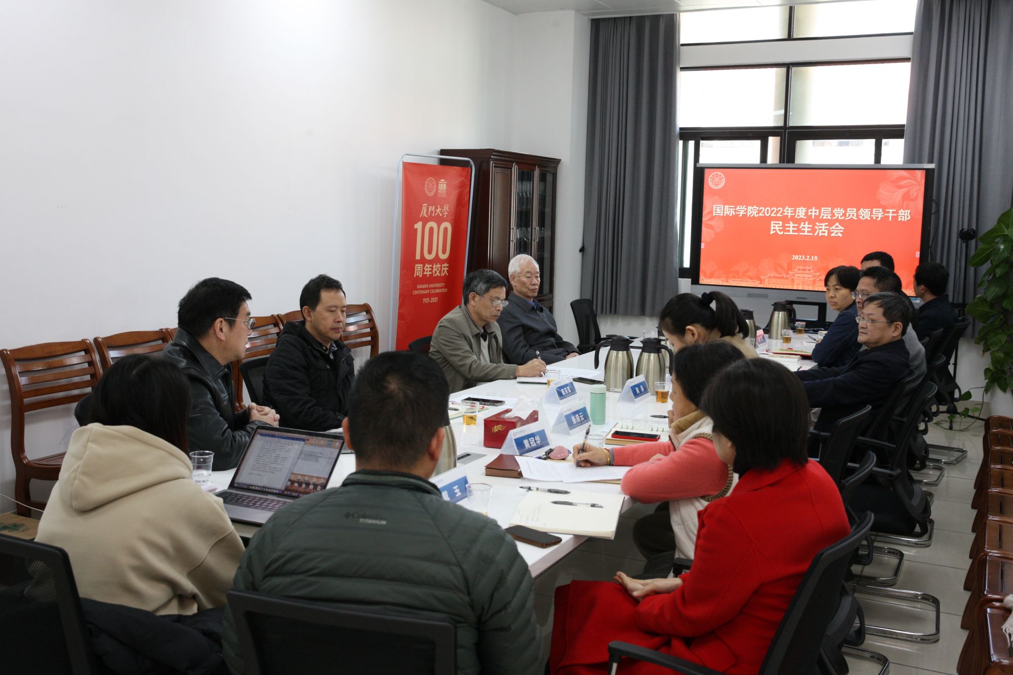 2月15日下午,国际学院在漳州校区主4号楼514会议室召开2022年度党员领导干部民主生活会。校党委第五督导组组长郑建华到会督导,学校基层党建工作联络员鲁同安,校纪委委员、嘉庚学院纪委书记陈东军到会指导。学院党政领导班子全体成员参加会议,学院科级干部、工会主席、党支部书记代表等列席会议。会议由学院党委书记何元赞主持。