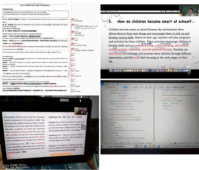 疫情之下,学生们天天待在宿舍,可能会出现一些心理不适。学院安排各班辅导员每天通过电话、QQ、微信等方式,跟学生进行沟通,了解大家的学习、生活情况,排解学生的心理困惑。每周2次的老师坐班辅导也转为“云端”进行。老师通过腾讯会议及QQ群等形式,定时守候在“云端”开展线上教学指导,为有需要的学生答疑解难,同时关注学习有困难的学生,及时关爱辅导。虽然,老师们无法与同学们面对面的交流,但是在网络背后,老师们也一样把自己的关爱传递给他们。每一份精心的课件展示,每一条细致的批改评语……都会给学生们传递一份温暖。