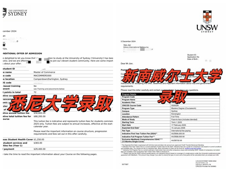 硕士阶段:已收到悉尼大学、新南威尔士大学、莫纳什大学等大学研究生录取通知书。