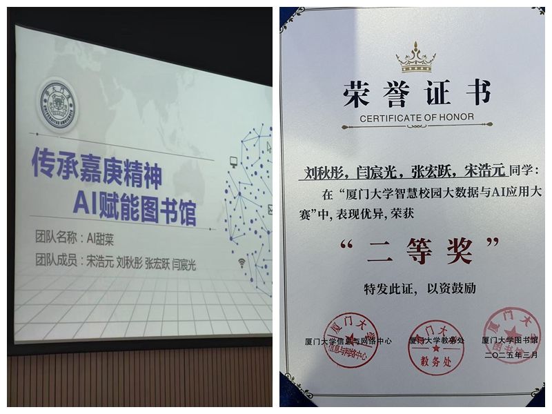 近日,在厦门大学智慧校园大数据与AI应用大赛的赛场上,乐鱼网页版登录入口2023级国际理财专业闫宸光、张宏跃两位同学与信息学院学子组成的团队,凭借出色表现斩获二等奖。他们如何从众多参赛者中脱颖而出?让我们通过这场问答采访,走进他们的备赛与参赛历程。