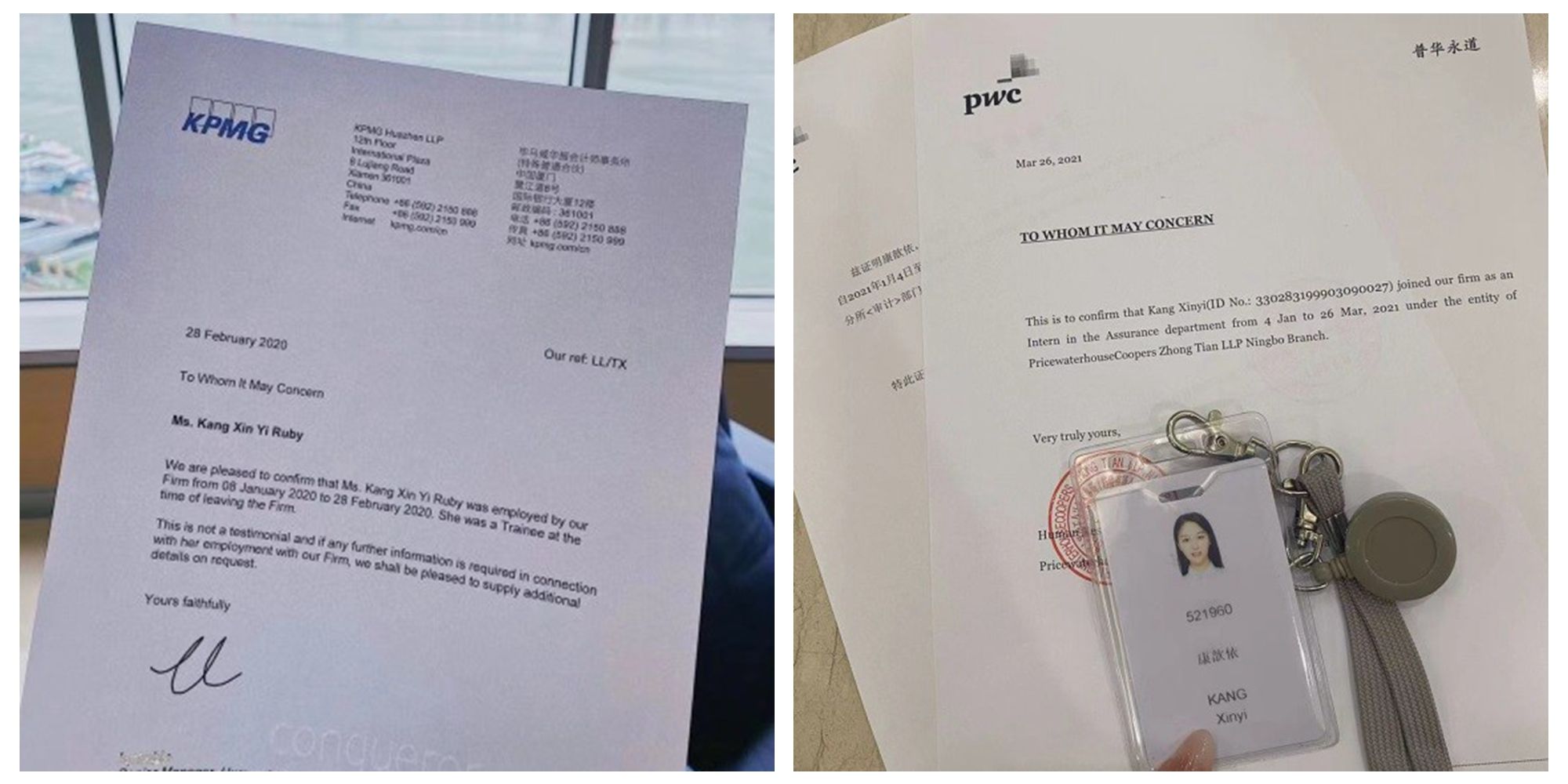 其次,充分把握和利用好厦门大学为我们提供的很多机会,多争取进入更好的公司实习,这对我们申请排名更高的名校研究生起着至关重要的作用。我在厦大国际学院就读期间,参加了厦门大学思明校区毕马威会计师事务所来学校开展的宣讲活动,随后通过层层选拔,最终在毕马威厦门事务所完成了一段长达两个月的寒假实习,获得了非常宝贵的实习经验。之后我又进入普华永道实习,进一步丰富了我的实习经历,这些对我申请名校研究生无疑是一大重要助力。因此,非常建议同学们在国内就读期间的每个寒暑假,提前关注互联网大厂、世界四大会计师事务所、咨询、券商投行等公司官方网站发布的寒暑假实习生招聘信息,做好充足的笔试及面试准备。