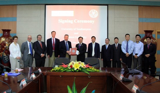 2012年11月,南安普顿大学副校长兼教务长Adam Wheeler访问厦门大学期间提出在厦门大学成立南安普顿大学英语语言培训中心的构想。2013年3月南安普顿大学校长访问我校期间,也就这一问题与国际学院进行交流。今年5月,英国南安普顿大学就国际学院合作项目发来意向书,并于今日最终签署了合作意向书。