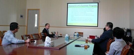 国际学院院长郑通涛教授、副院长黄冠华在翔安校区坤銮楼B509会议室接待了来宾。阿尔伯塔大学位于加拿大阿尔伯塔省会城市埃德蒙顿,成立于1908年。该校是加拿大G13大学联盟的成员,多年来与多伦多大学、麦吉尔大学、英属哥伦比亚大学一起稳居加拿大研究型大学前五,2015-2016年度QS排名全球96位。英语专业、语言学专业等专业居世界前列。