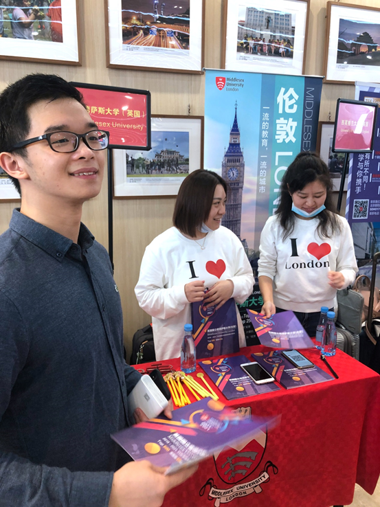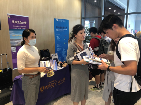 此外,英国提赛德大学也邀请了三位我院的毕业生来到了交流会现场助阵,分享自己的择校心得和目前的在读体验。他们帮助校方老师分发院校资料,接受学弟学妹的咨询。