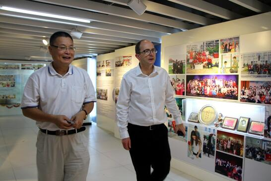 座谈结束后,Andrew校长在郑院长的陪同下,一同参观了国际学院的展厅、图书馆、教室等教学配套。中午,Andrew校长与我院都柏林项目学生见面,他向同学们简要地介绍了都柏林商学院的情况及专业特色,欢迎同学们以后有机会到该校交流学习。在问答环节中,学生就专业学习及个人职业规划等问题与Andrew校长积极互动,现场气氛活跃。