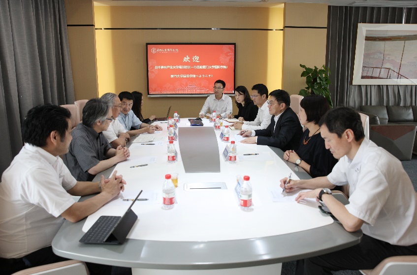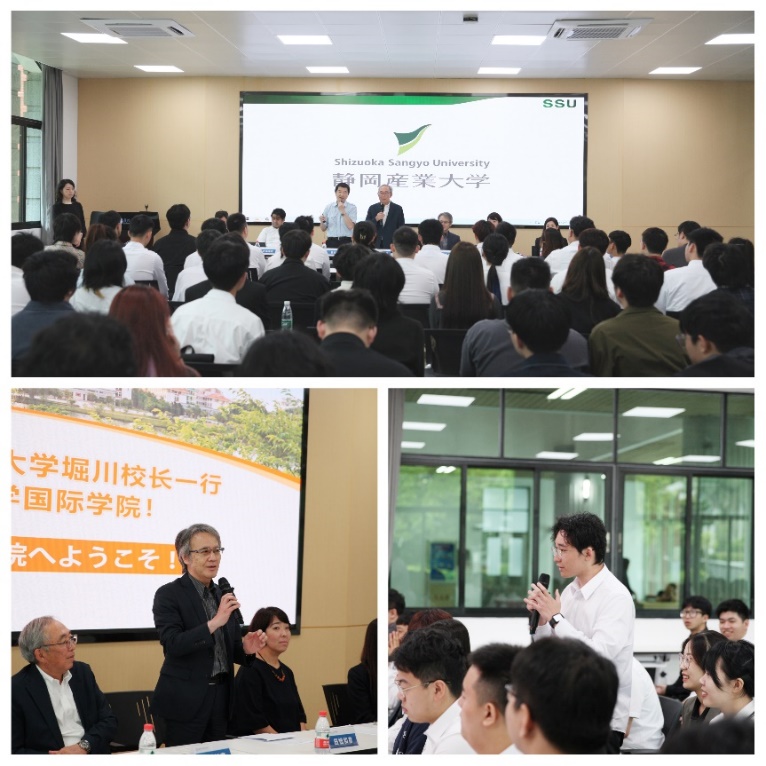 陶涛院长对堀川知廣校长一行的到来表示欢迎,对静冈产业大学校长及老师们长期以来给予合作项目的支持和对学生们的耐心指导表示衷心感谢。他指出,中日项目自2007年开办以来,已有14届学生赴日本静冈产业大学学习。学生完成本科学业后,部分选择考入日本或英美等国的研究生院进行专门领域的研究学习,也有不少在中日两国以及国际各个领域工作和服务,获得了良好的社会反响。近五年来,国际学院学生通过编入考试前往静冈产业大学完成本科学业的学生人数显著增加,他希望双方能共同努力,继续保持两校教育交流项目良好发展。