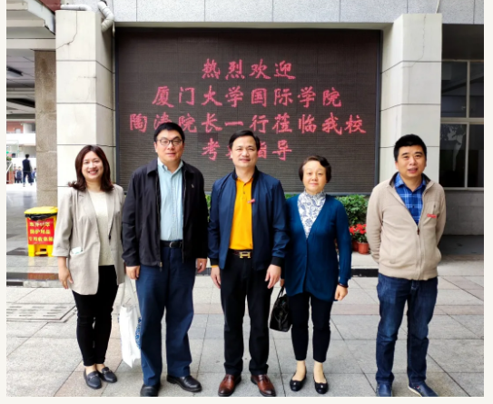 随后,陶院长一行到访泉州现代中学,并在该校王炳庆校长、康培东副校长的陪同下参观了校园。参观过程中,陶院长详细了解了泉州现代中学的发展历史,办学特色和学生情况。双方就如何进一步携手强化优质生源基地建设、共同培养国际化人才等相关问题进行了交流与沟通。