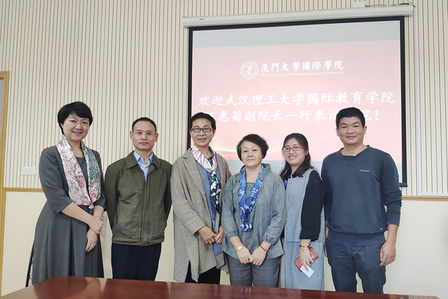 海外教育学院/国际学院副院长黄冠华女士在坤銮楼B509会议室会见了来宾,招生科相关负责老师参加了会谈。黄冠华副院长首先代表学院对武汉理工大学国际教育学院一行来访表示欢迎,并就国际学院的办学历史和国际合作现状作了简要介绍。她表示,两院在建设发展过程中具有很多共性,希望双方在项目招生、专业课程建设、人才培养、制度建设、国际合作和文化交流等方面加强交流、学习与借鉴。